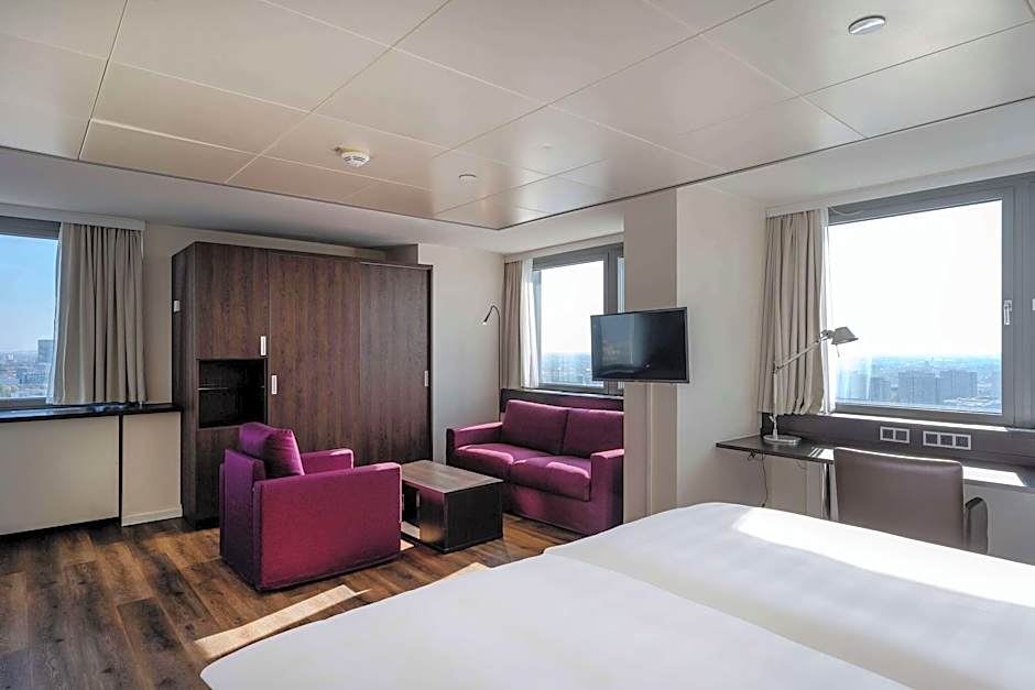 This suite consists of 1 living room, 1 separate bedroom and 1 bathroom with a shower and free toiletries. Guests can make meals in the kitchen that comes with a stovetop, a refrigerator, kitchenware and a microwave. The air-conditioned suite provides a flat-screen TV with streaming services, soundproof walls, a tea and coffee maker, a seating area as well as city views. The unit offers 1 bed.